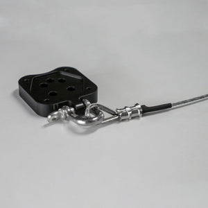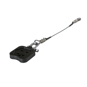 Attaching to the bottom of the TITH, the Thingymajig has been CNC milled to incorporate a safety loop, allowing for the attachment of a safety cable to the aircraft or equivalent. In case of an accidental drop and release of the MoVi, the wire cable secured through the Thingymajig's safety loop will catch the package.