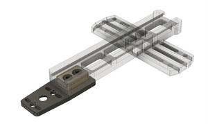 Unique brass/stainless steel wedge to secure the bracket to the front of the Ronin cross bar.